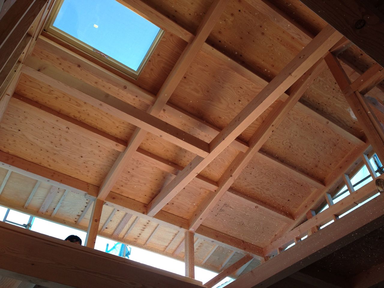 写真は吹抜越しの天井。広くて明るくてなんかいいわ。