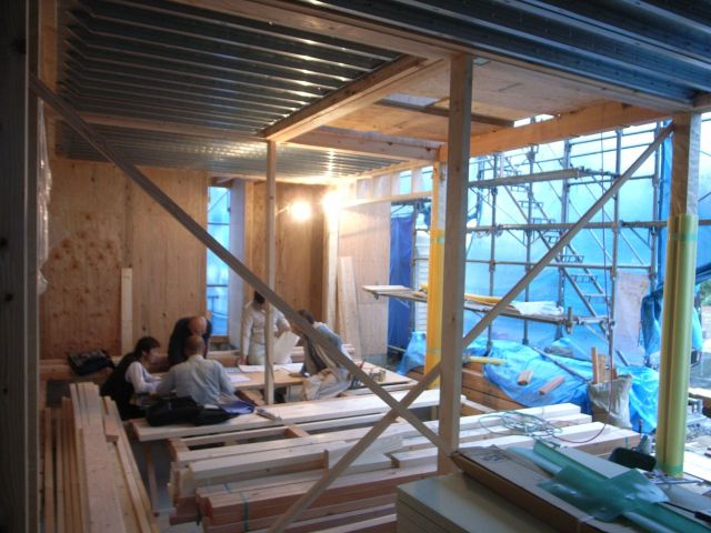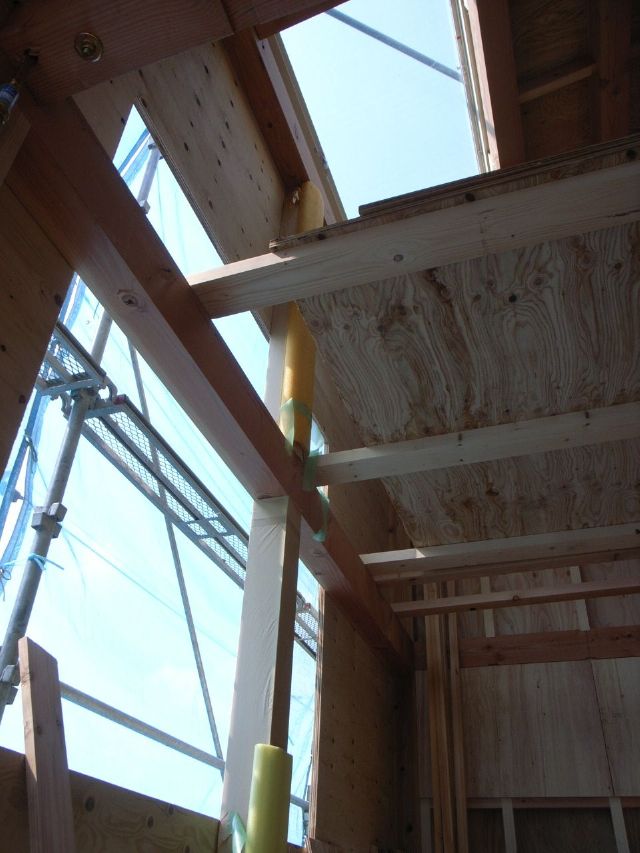 大工さんは外部がらみがほぼ終了。内部は設備関係の業者さんが入っています。