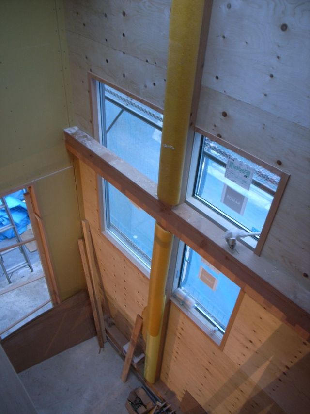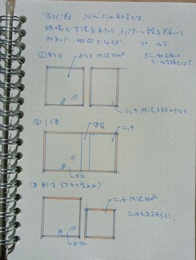 その一つ、「アングルが小さい」枠を付けず柱を見せる納まりのところがあり、そこんとこどうしようかと現場で打合せをした結果が写真のところです。