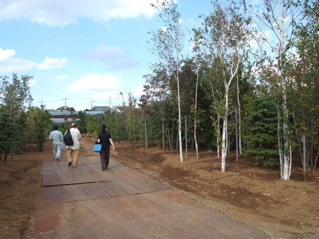 主木はちょっと日当りが良すぎて心配なのですが、建て主さんの一目惚れでコハウチワカエデの株立ち。