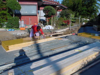 役所の検査もあります。横浜は木造の建物でも配筋を見るんだね。