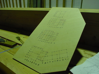 金物関係を伏せ図に落としたものと、ちょっとした変更事項をもっていきました。