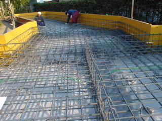 鉄筋はきれいに組まれています。いくつか割れ防止の補強筋をお願いして終了。役所の検査も問題ありませんでした。