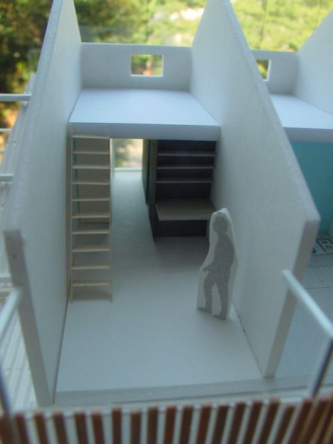 2006.03駒場東大前のアパート 東大前の大学の反対側は狭い路地があちここに張り巡らされている。そんな路地のひとつに面しています。 大家さんの部屋、貸室ともに南面するように平面を四分割し細長い部屋としています。 その貸室の南面する壁を全て開口とするため2階は木造によるラーメン構造。貸室の前面を開口にすることができました。 バルコニー廊下とも鉄骨によるキャンチレバーとし限られた建築面積をすべて居室に当てています。 構造:江尻憲泰() 施工:ギャランティーハウジング